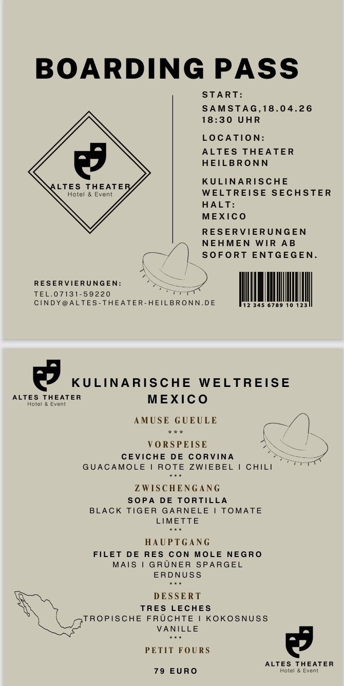 Die kulinarische Entdeckungsreise im Alten Theater geht in die nächste Runde. Diesmal führt sie nach Mexiko – ein Land voller intensiver Aromen, lebendiger Farben und traditionsreicher Küche.