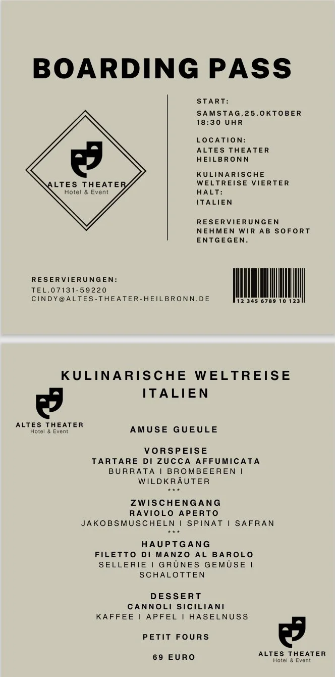 Kulinarische Weltreise Italien am 25.10.25 Die kulinarische Weltreise geht weiter… Nächster Halt: ITALIENSollten Sie besondere Essgewohnheiten oder Intoleranzen haben, so lassen Sie uns das gerne bei der Reservierung wissen. Melde dich mit deiner E-Mail-Adresse an, um Neuigkeiten und Updates zu erhalten. E-Mail-Adresse Registrieren Vielen Dank!
